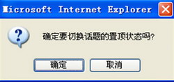 打开某一话题的内容页面,点击话题状态栏上方的热字“置顶”,弹出提示框,点击“确定”按钮后,话题状态为置顶,话题状态栏将显示置顶图标 。返回话题列表,您将看到该话题出现在话题列表上方的“置顶话题”栏中。如果该话题已经为置顶状态,再次点击“置顶”功能键后,将取消该话题的置顶状态。