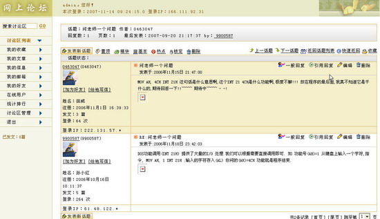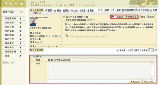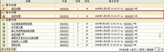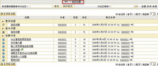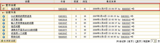 设置话题属性状态进入某一话题。您可以看到在话题状态栏的上方有 “置顶”、“精华”、“基本”、“热点”、“锁定”等功能键,管理员通过点击这些热字可以改变话题的属性状态。具体操作如下: