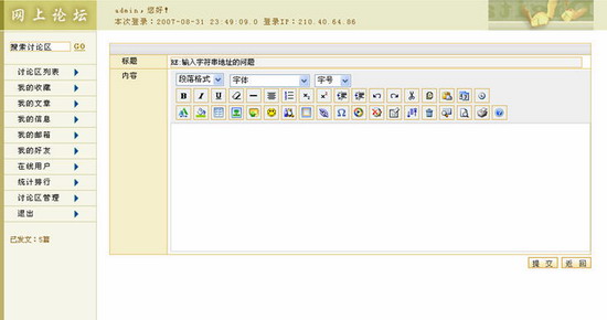 第一步:进入某讨论区首页,在话题列表或文章列表下方的“快速发表新话题”区域输入标题和内容。