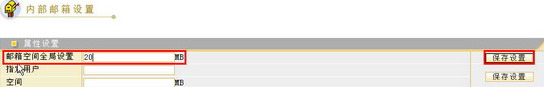 内部邮箱管理在内部邮箱管理中,管理员可以对邮箱空间全局和指定用户邮箱空间进行设置,具体操作如下: 点击左侧导航区的“内部邮箱管理”,进入内部邮箱管理界面。 图 1 内部邮箱管理页面邮箱空间全局设置如图所示,在“邮箱空间全局设置”一栏的“邮箱空间全局设置”文本框填写整个教学平台的每一个注册用户所能够使用的内部邮箱的空间大小(如20M)。输入完毕,点击“保存设置”按钮,完成对内部邮箱空间的全局设置。 图 2 邮箱空间全局设置指定用户邮箱空间设置如图所示,在“指定用户”输入框内填写用户名,如果要同时填写多个用户名,请在不同用户名之间用逗号分隔开。在“空间”文本框输入指定用户内部邮箱的空间大小(如50M)。输入完毕,点击“保存设置”按钮,完成对指定用户内部邮箱空间大小的设置。 图 3 指定用户邮箱空间设置 |