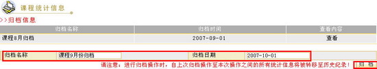 课程统计信息课程统计信息包括三个栏目:课程归档栏目、课程归档信息查询栏目和课程统计栏目。在归档栏目中,管理员可以将自上次归档日期到选定日期之间的课程统计信息归档,归档后的信息将不再出现在课程统计信息中,而是作为一个历史记录存档;在查询课程归档信息栏目中管理员可以查询某一课程的归档信息;管理员还可以查看教学平台内的课程统计信息并输出统计结果报表,课程统计信息的项目包括学生选课人次、教师进入课程次数、学生进入课程次数、课程被访问次数、通知数量、讲义内容数量、讨论主题数量、讨论文章数量、常见问题数量、布置作业数量、上交作业数量、访客进入次数和问卷数量等。具体操作如下: 图 1 课程统计信息页面添加归档信息管理员可以将自上次归档之后的统计信息进行再次归档,具体操作如下:在“归档信息”栏输入归档名称,选择归档日期,点击“归档”按钮,归档信息将出现在归档列表中。 图 2 添加归档页面查询课程归档信息在“查询课程归档信息”栏的文本框中输入课程名称,如“EDA技术与应用”,点击“查询”按钮将显示该课程在所有归档记录中的统计信息。 图 4 显示查询的归档信息 课程统计课程统计的方式有两种:按院系统计和按课程统计,这里以“按课程统计”为例,具体操作步骤如下: 请在“课程统计”栏选择统计方式和统计区间,勾选课程统计的统计指标项。 图 5 课程统计 点击“显示统计结果”按钮,进入课程信息统计结果显示页面,您可以很方便地查看所有课程的统计信息。页面上方列出了相应的栏目,点击该栏目,系统将列出依据该栏目“逆序”或“正序”排列的列表。 图 6 课程信息统计结果如果要导出统计结果,请在如图3-9-7所示的课程统计页面点击“导出统计结果”按钮,系统弹出提示窗口,选择“保存”按钮,可以将统计结果报表保存至本地机。 图7 提示窗口 |
