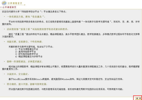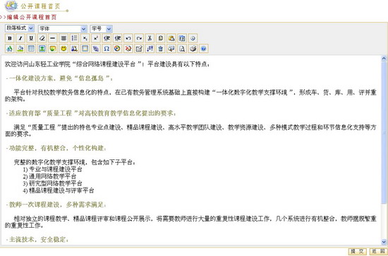 第三步:点击“提交”按钮提交保存所编辑信息,此时系统自动返回公开课程首页,可以浏览所提交的信息。
