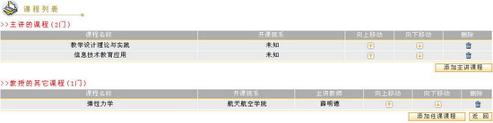 如果要删除该教师的主讲课程或所教授的其它课程,您只需点击课程所在行的“删除”图标即可。