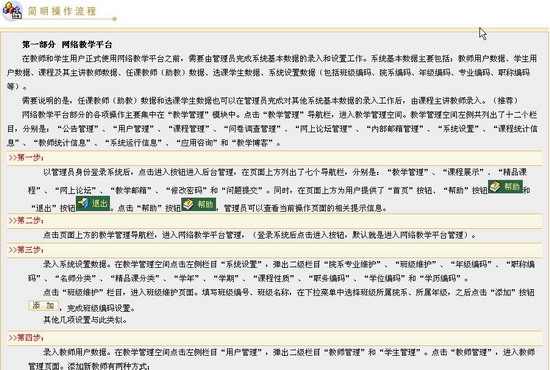 点击“简明操作流程”,进入简明操作流程页面。管理员可以查看网络教学平台操作指导。